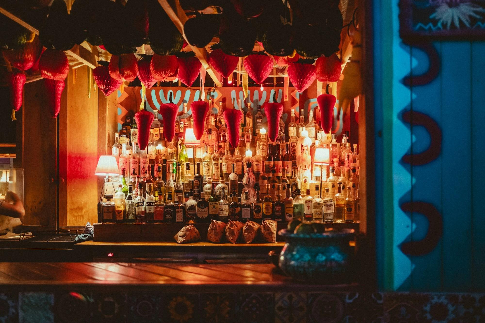 The bar's famously colourful fit-out mixes religious kitsch with party-bar energy, and every round comes with a freshly-popped bag of Old El Paso-inspired seasoned popcorn. Expect Mexican beers, agave spirits, and a delicious frozen margarita special that changes each month.
