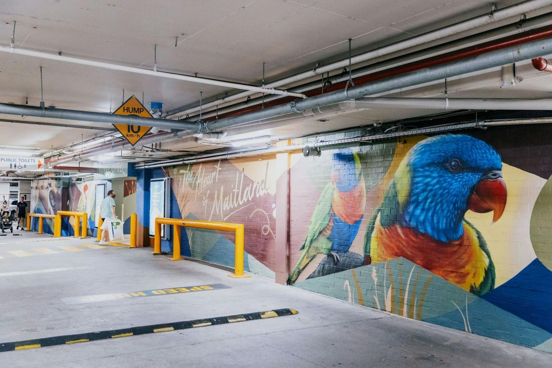 'The Heart of Maitland' was curated by local Newcastle artist Jordan Lucky in the carpark of Maitland Central.