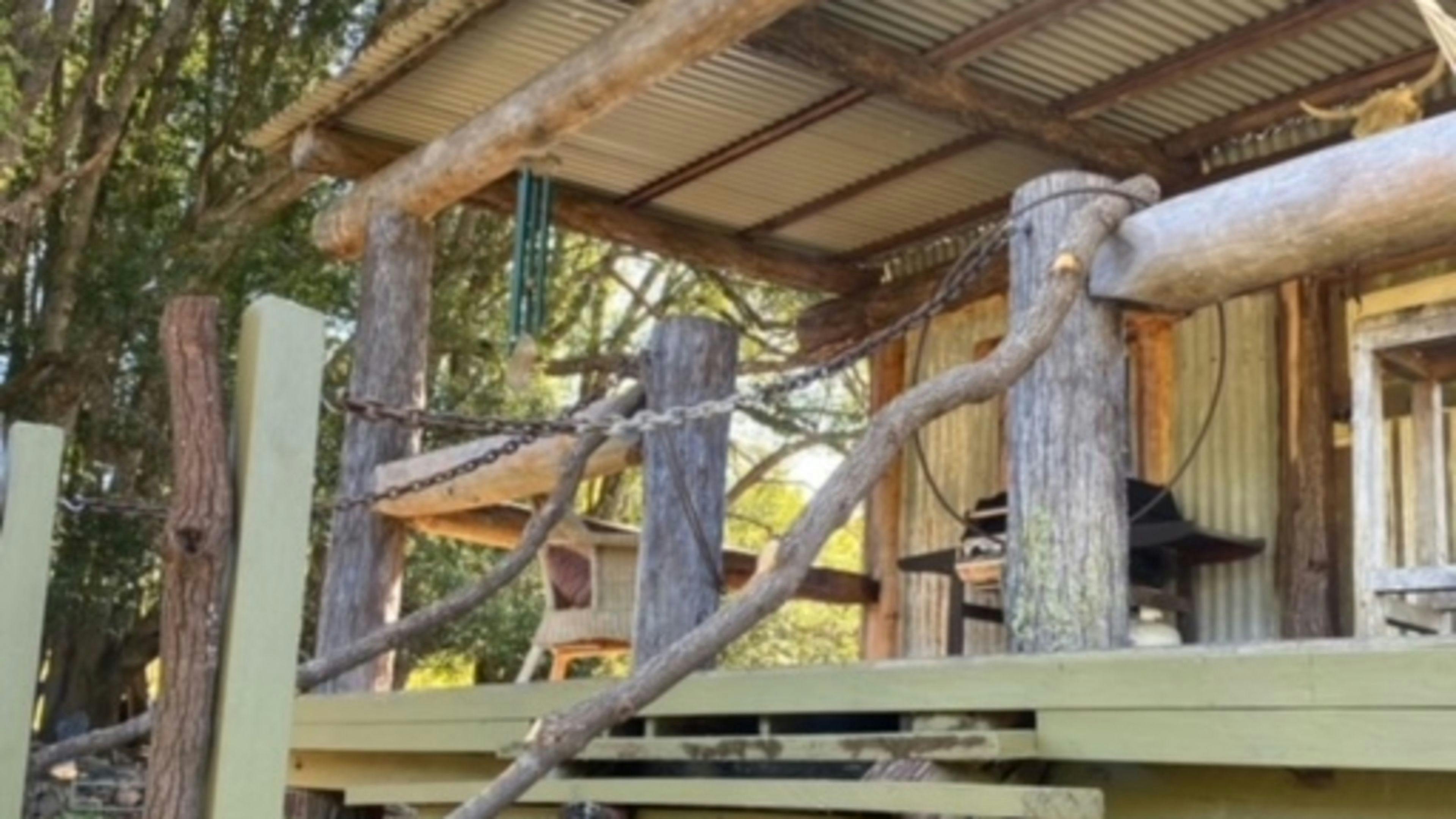 This rustic little shack is nestled near the creek that flows in the hollow of the 100-acre property.