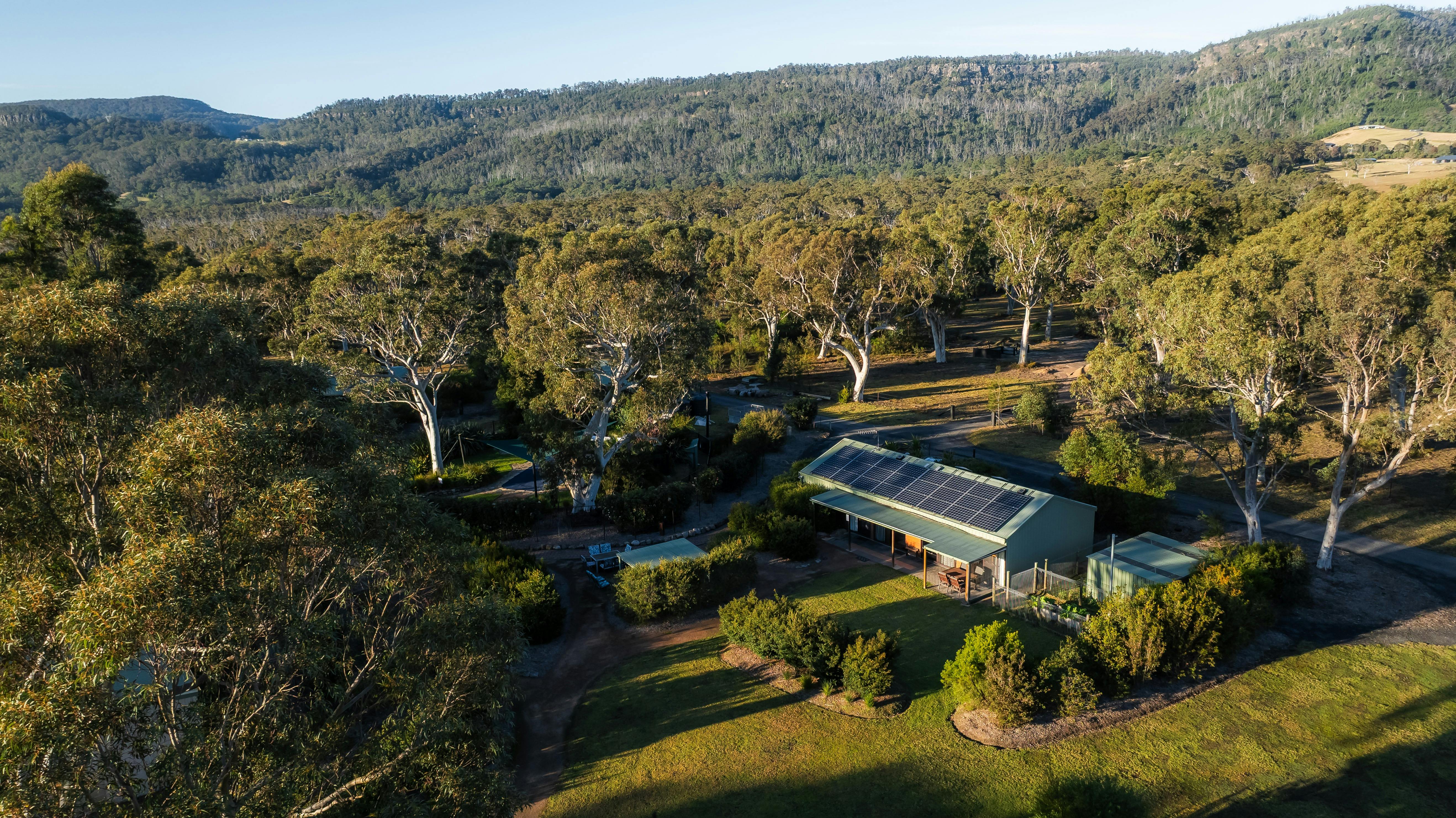 The Lodge consists of three bedrooms (one queen, one double and a bunk room) with en suite to the double, separate bathroom with shower and basin and additional separate toilet. The kitchen has all the modern facilities a family and group requires and flows into the family area suitable for large groups. Digital television, DVD and iPod docking stereo are available for all your entertainment requirements. With ceiling fans, a veranda and fully insulated, the Lodge provides comfort for the winter months and a cool change for the summer. The private court yard situated off the lounge area has your own barbecue and campfire with firewood provided.