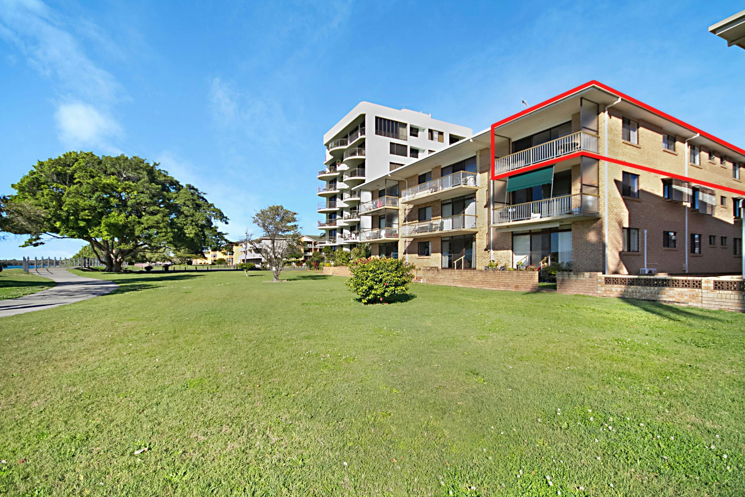 This unit will provide you with absolute riverfront views! This cosy, affordable unit has two bedrooms, one queen bed, two single beds) and sleeps up to four people. Unit seven is located on the third floor with four storey walk up – sorry no elevator. Sit back on the private balcony and bask in the beautiful views over the Tweed river.