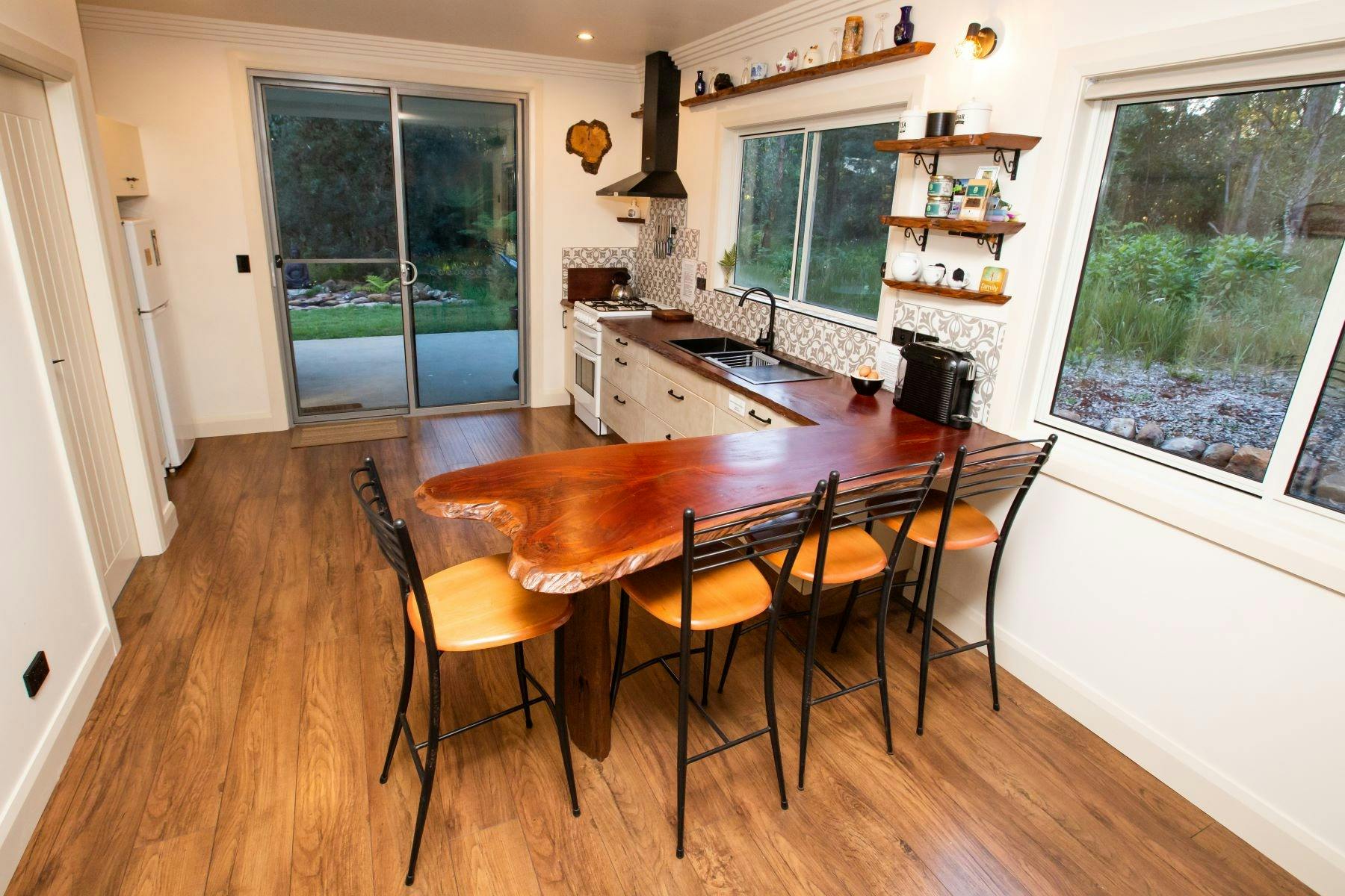 Escape to renowned Dorrigo accommodation & breakfast snack pack & bottle of bubbly on arrival. Breathtaking locale of 120 acres of forest, their eco-retreat off-grid with trails to the Deerpark Creek with its amazing whirlpools, relaxing picnics and trout fishing.