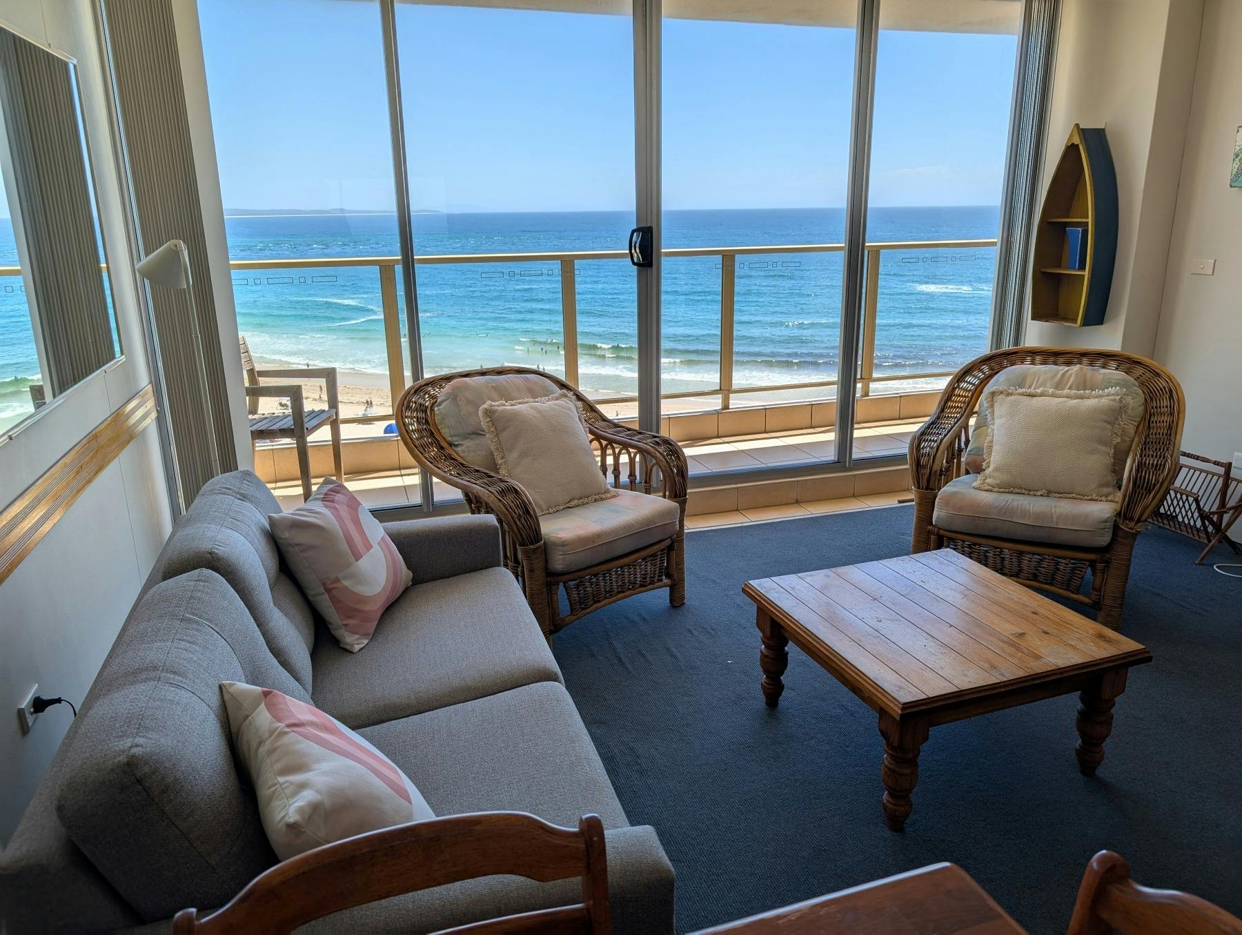 This unit is positioned on the seventh floor of the Ebbtide building, overlooking Forster’s Main Beach and offering spectacular views of the beach and beyond.