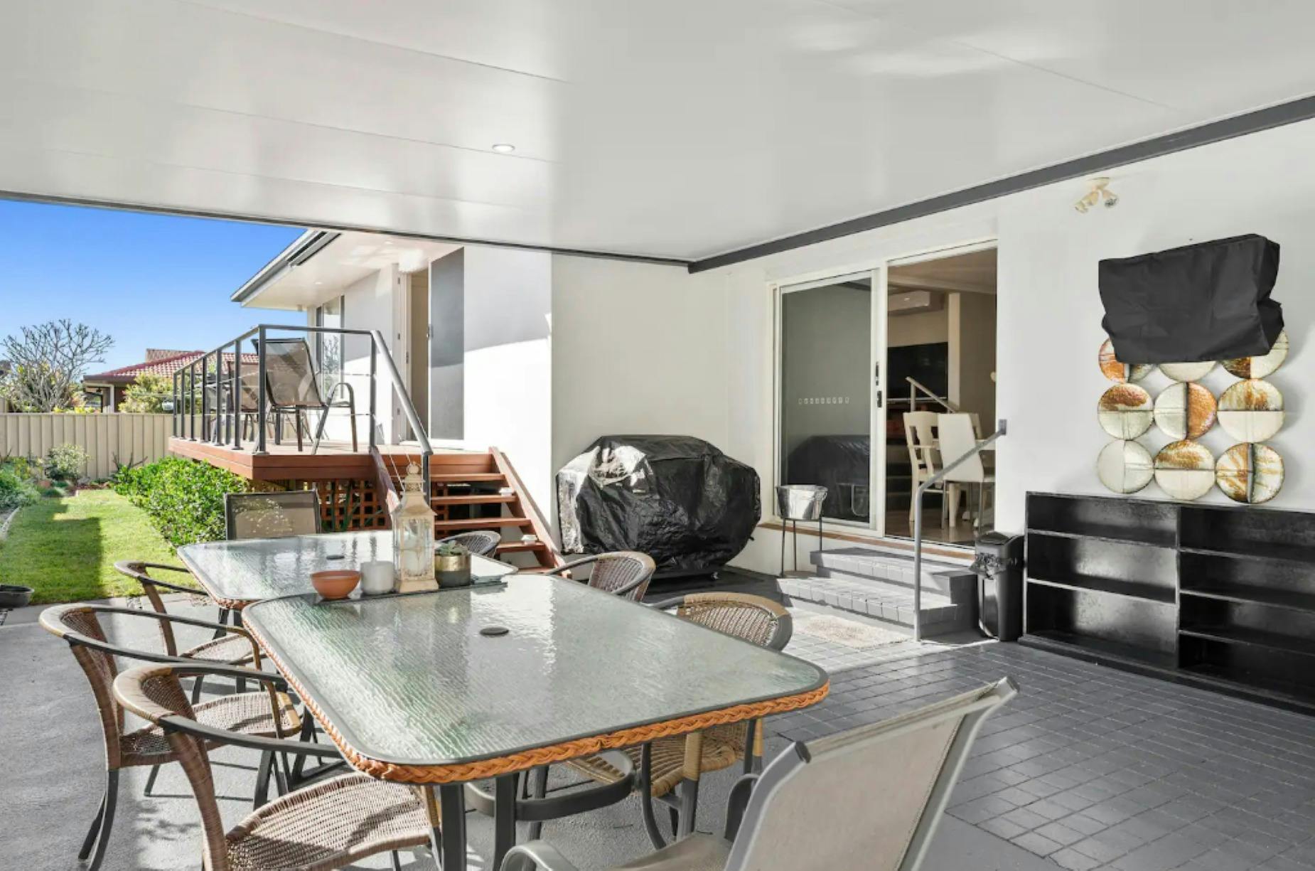 Take your pick with how and where to relax! If you've had enough of the outdoors, choose one of the two air-conditioned living spaces with Wi-Fi to stay connected to your favourite flicks or games. Bedrooms are appointed with built-in wardrobes, beds, and ceiling fans throughout, and you can be comfortable here all year round. Outside, you'll find a huge undercover patio with a barbeque, an eight-seater dining setting and an enclosed yard – perfect for your furry friends to enjoy!