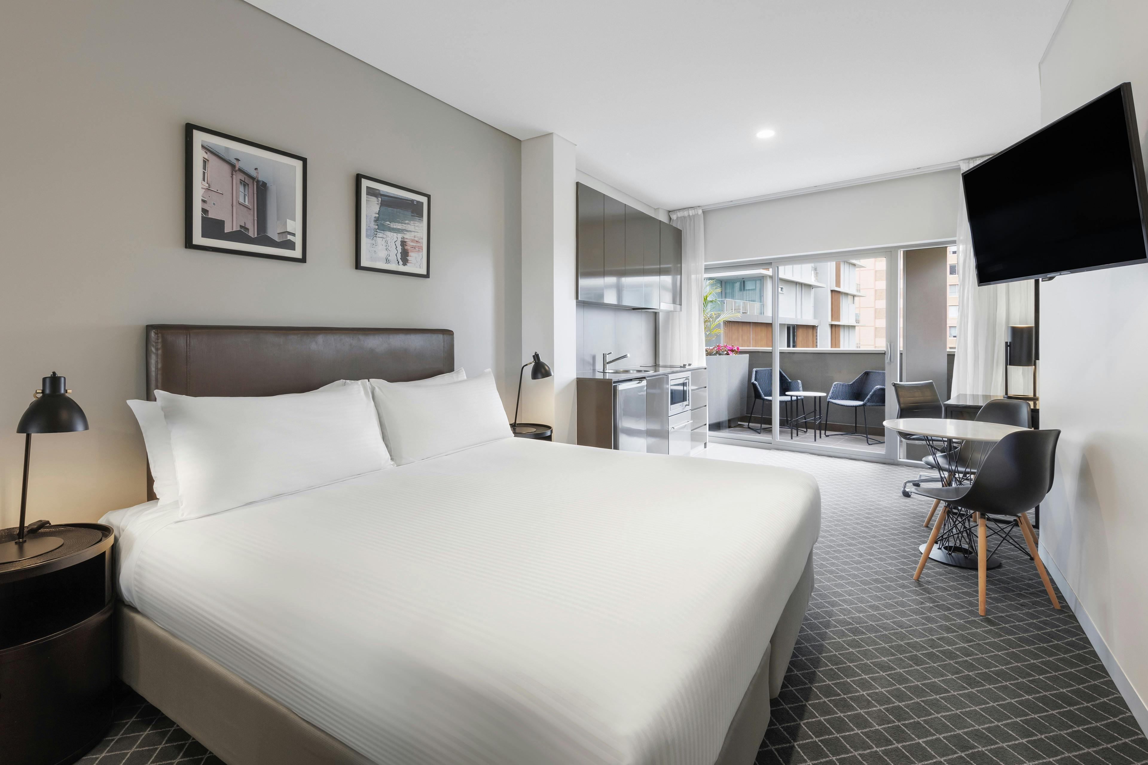 The studio suites are equipped with a kitchenette and amenities. The hotel's convenient location means you are a short walk from Bondi Junction Transport Hub, providing easy access to Sydney CBD, Sydney Cricket Ground, Moore Park, Randwick Racecourse and the iconic Bondi Beach.