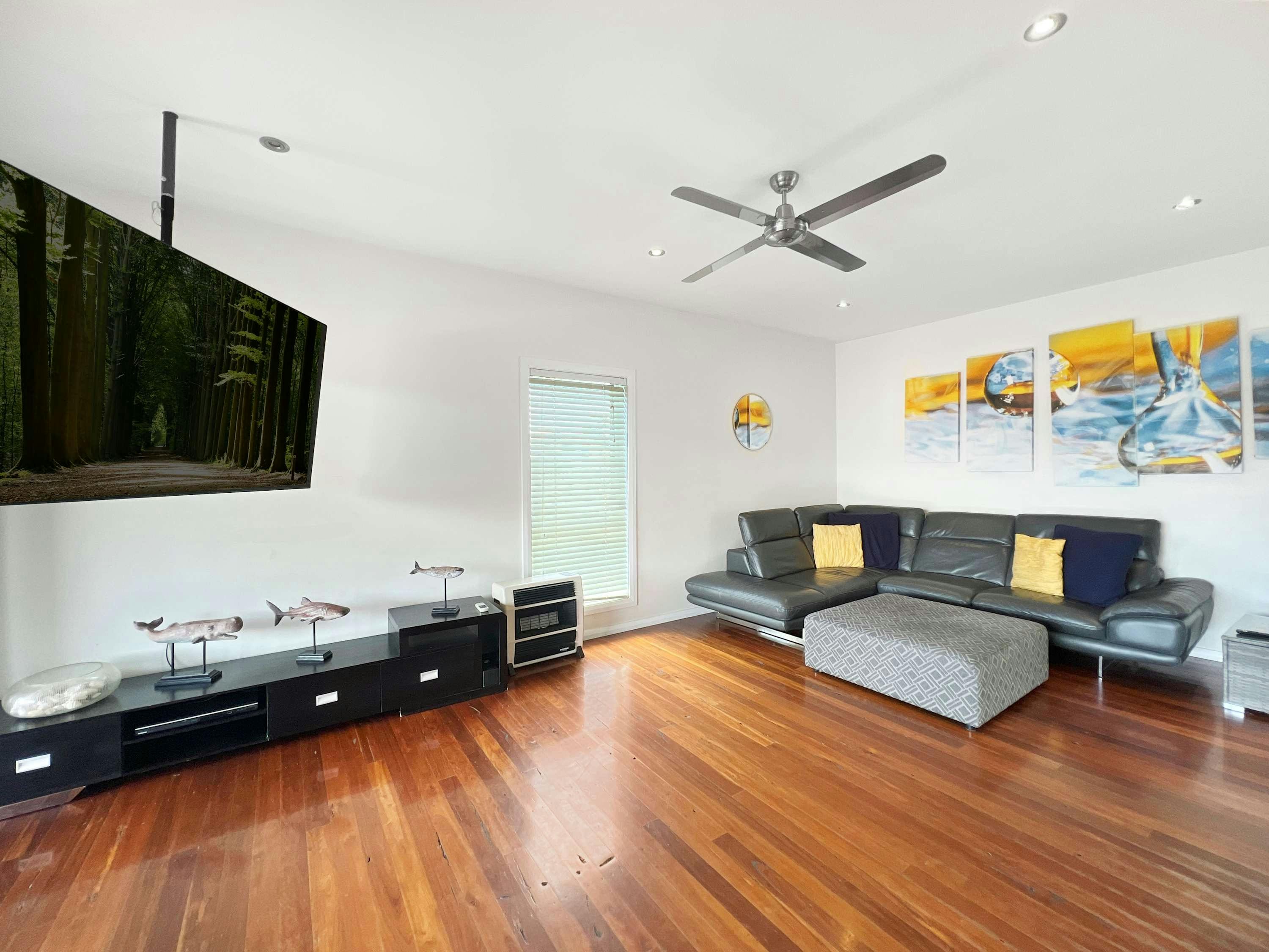 Additional amenities include a family bathroom, ensuite, walk-in robe, private balcony, ceiling fans, heating, and a convenient outdoor shower. The modern kitchen is fully equipped with gas cooking, and more. Just a short walk to the beach, and a few minutes drive to the Waterfront Marina, Shellharbour Village, and surrounding attractions.