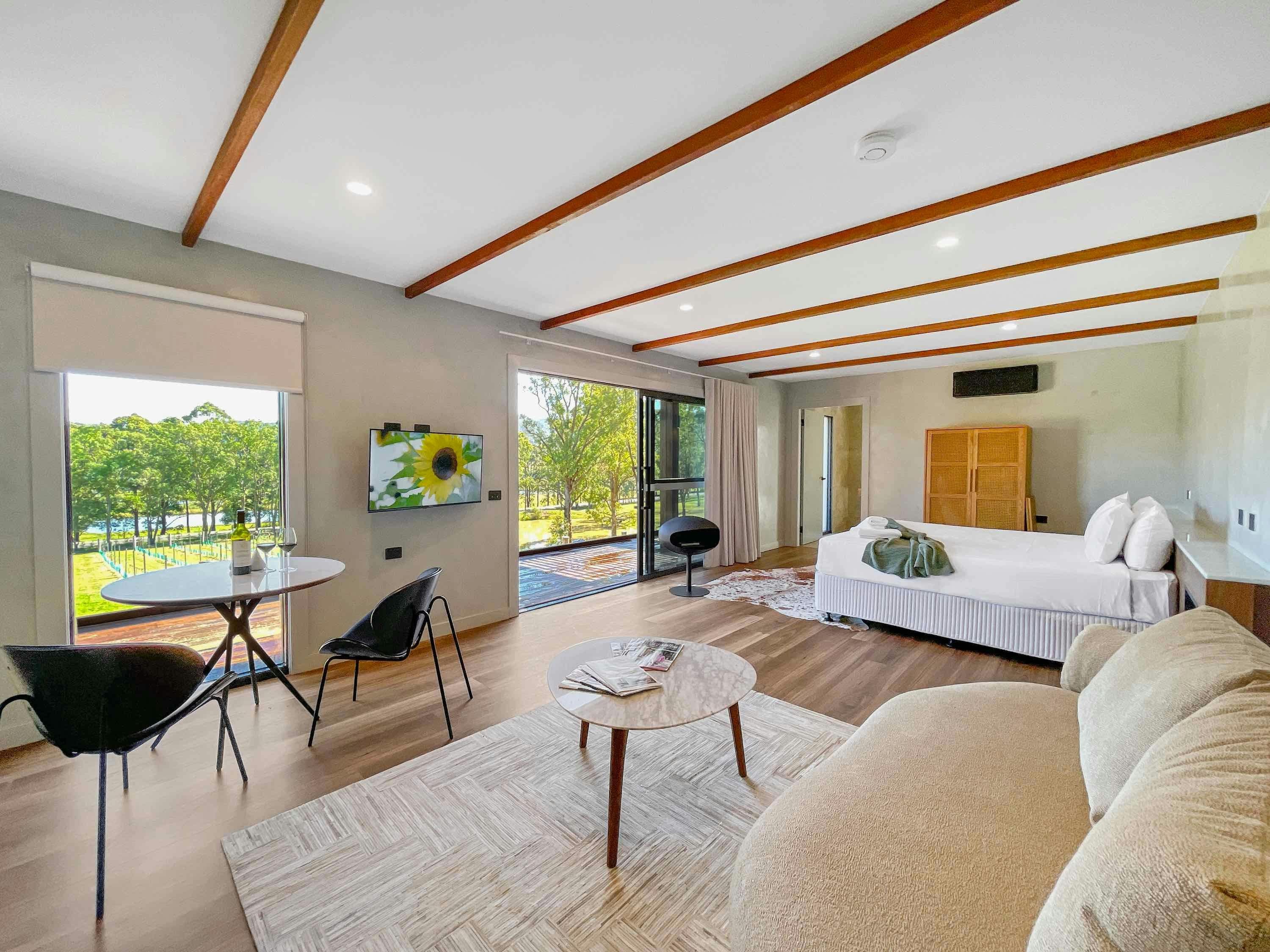 Treat yourself and that special someone to a romantic escape at Petra at Cael's Gate. Enjoy the style and comfort of this brand new, all abilities studio just footsteps away from the delights of the estate's cellar door and moments to the surrounds of the Broke Fordwich area, with its reputation for wonderful cellar doors, dramatic vistas and for being known as the quieter side of Wine Country.