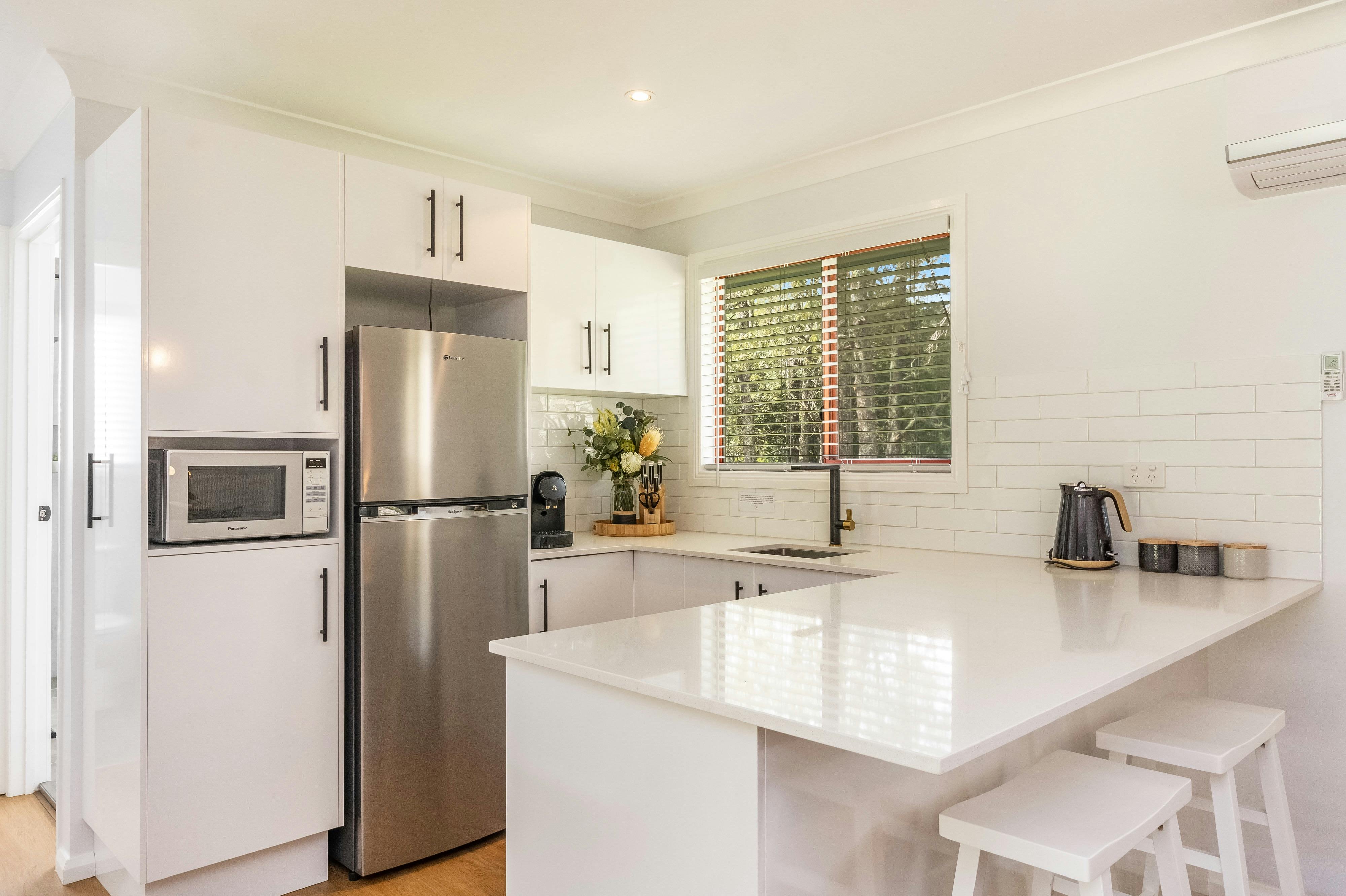 Their Creekside Cabins are the perfect destination for a romantic couples getaway. Nestled beside the beautiful Grady’s Creek, these one-bedroom cabins provide you with tranquil surroundings, comfort and a touch of luxury. Features include a private outdoor spa, gas log fire, queen-size bed, well-equipped kitchenette, modern bathroom, and a separate lounge/dining area.