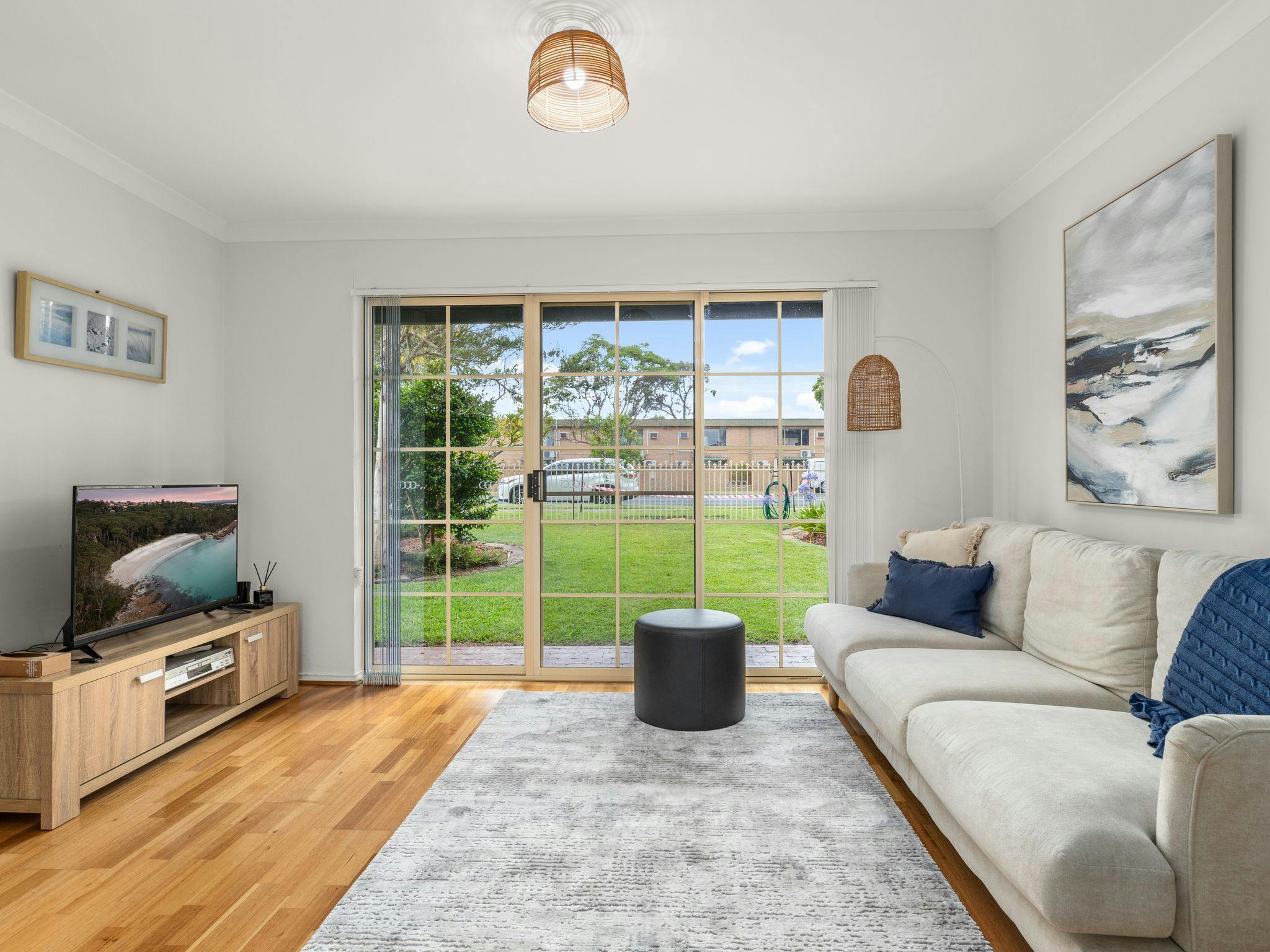 Step inside to discover a charming ambience with laid-back coastal chic interiors and thoughtful design. The open-plan living area features a flat-screen Smart TV and reverse-cycle air conditioning, ensuring a cozy atmosphere year-round. Whip up delicious meals in the well-stocked kitchen, complete with modern appliances and a coffee machine for your morning brew.