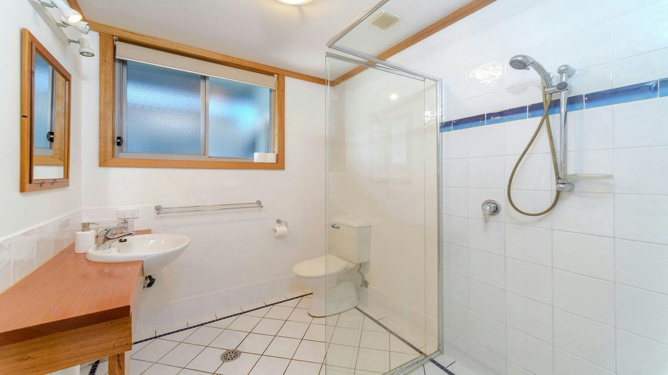 The four stunning bedrooms all with private decks are only 50 metres from the beautiful Brooms Head Beach. Each room is air-conditioned, and has vaulted ceilings, wooden floors, glass sliders to decks and ensuite bathrooms.