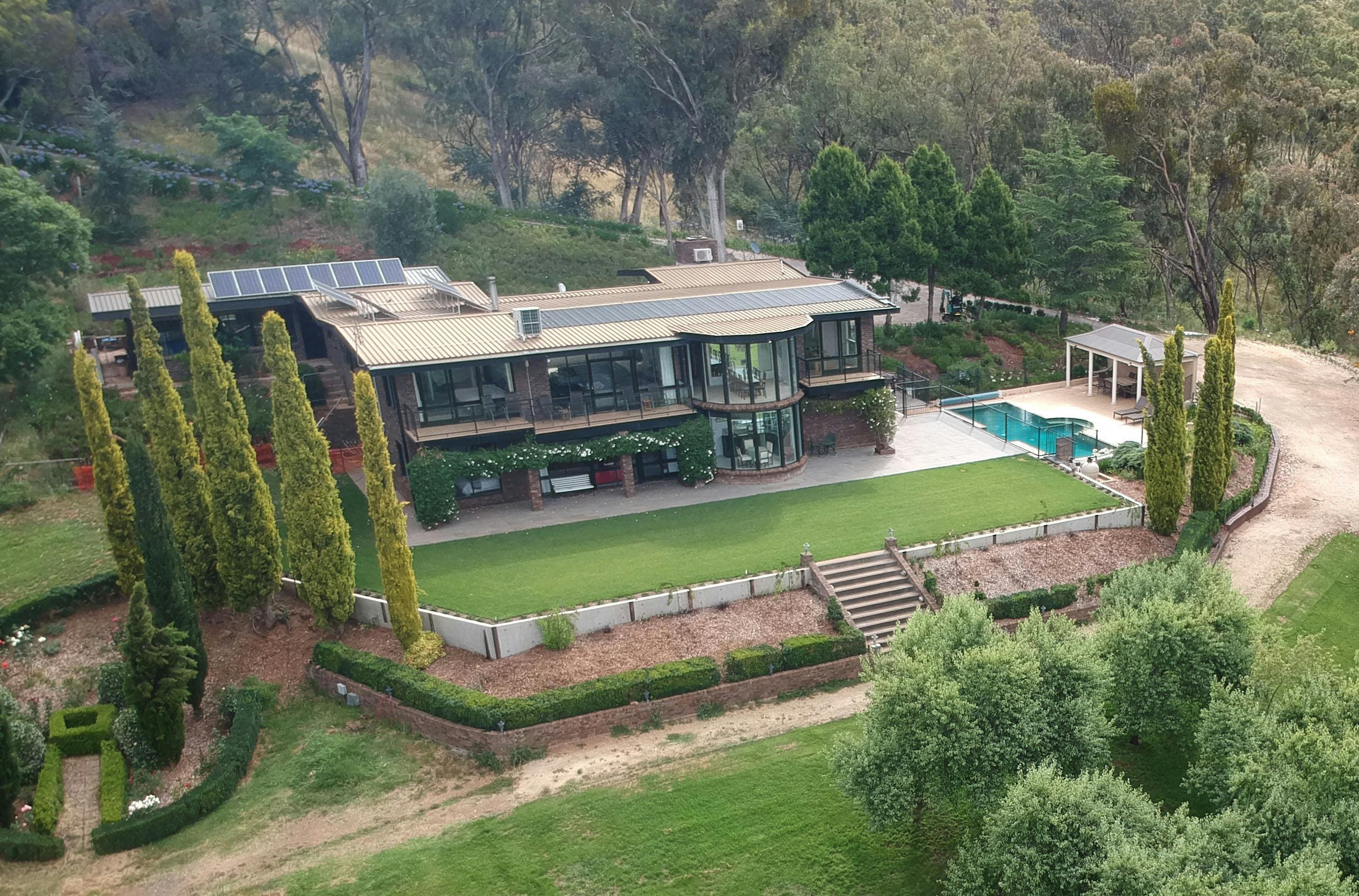 The Cutting Mt Panorama is a short-term holiday stay with six bedrooms, 5.5 bathrooms, and a wedding/events venue. The unique position of this property is on the corner, The Cutting, on the iconic Mount Panorama Motor Racing Circuit, offers unparalleled private seclusion in a country retreat property.