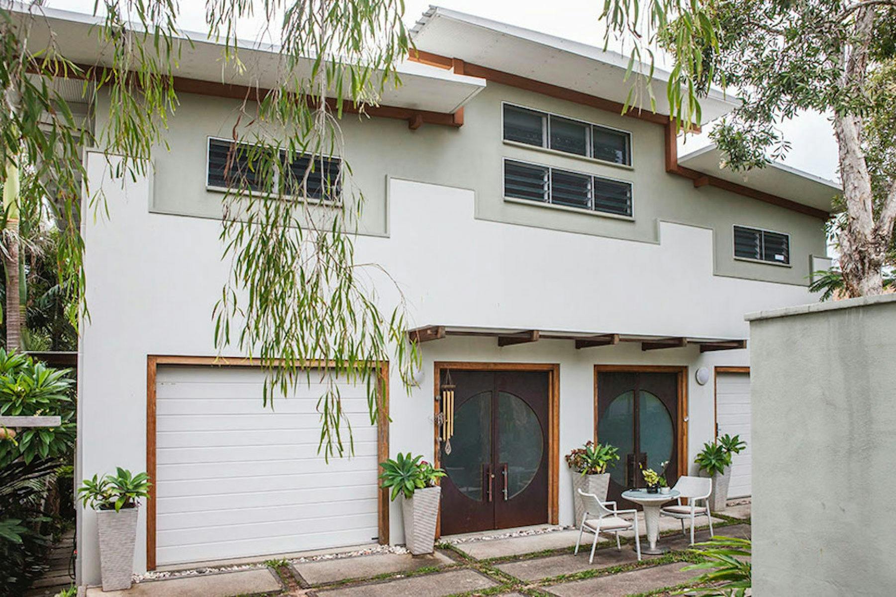 Welcome to Haven Tropicana, your private retreat in a bespoke beach house. Perfectly suited for couples, small families, honeymooners, or babymooners, this luxe lower duplex offers a serene blend of style, comfort, and tranquility. Step through handcrafted double doors into a thoughtfully curated space where polished seeded concrete floors and soft earthy tones create a calm, inviting ambiance. Every detail has been designed to ensure a relaxing and memorable stay. The open-plan living area features a fully equipped galley kitchen with suspended concrete benches and custom cabinetry, complemented by a striking Norfolk pine dining table. Relax on the antique cane daybed adorned with a hand-woven wool rug, or step out onto the expansive north-facing deck. Surrounded by lush tropical greenery and vibrant birdlife, the deck includes a Brazilian double hammock—perfect for soaking in the sunshine or enjoying the ocean breeze. The accommodation offers two spacious queen bedrooms, each designed for ultimate comfort with resort-quality beds, 100% cotton and linen bedding, and large windows framing garden views. Both rooms feature integrated built-ins and exude a serene, restful vibe. Whether you’re after a romantic escape or a peaceful family getaway, Haven Tropicana is your perfect beach haven.