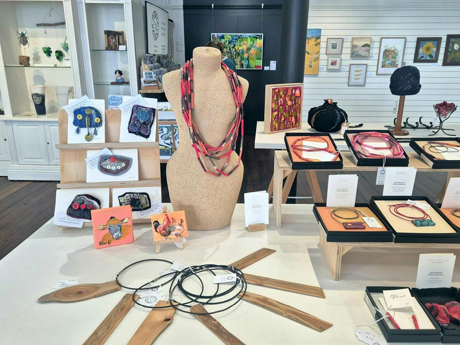 The group has a colourful abundance of crafts, jewellery, artwork, slow fashion, weaving, photography, and specialty services. Exhibitions and featured artists works are presented regularly.