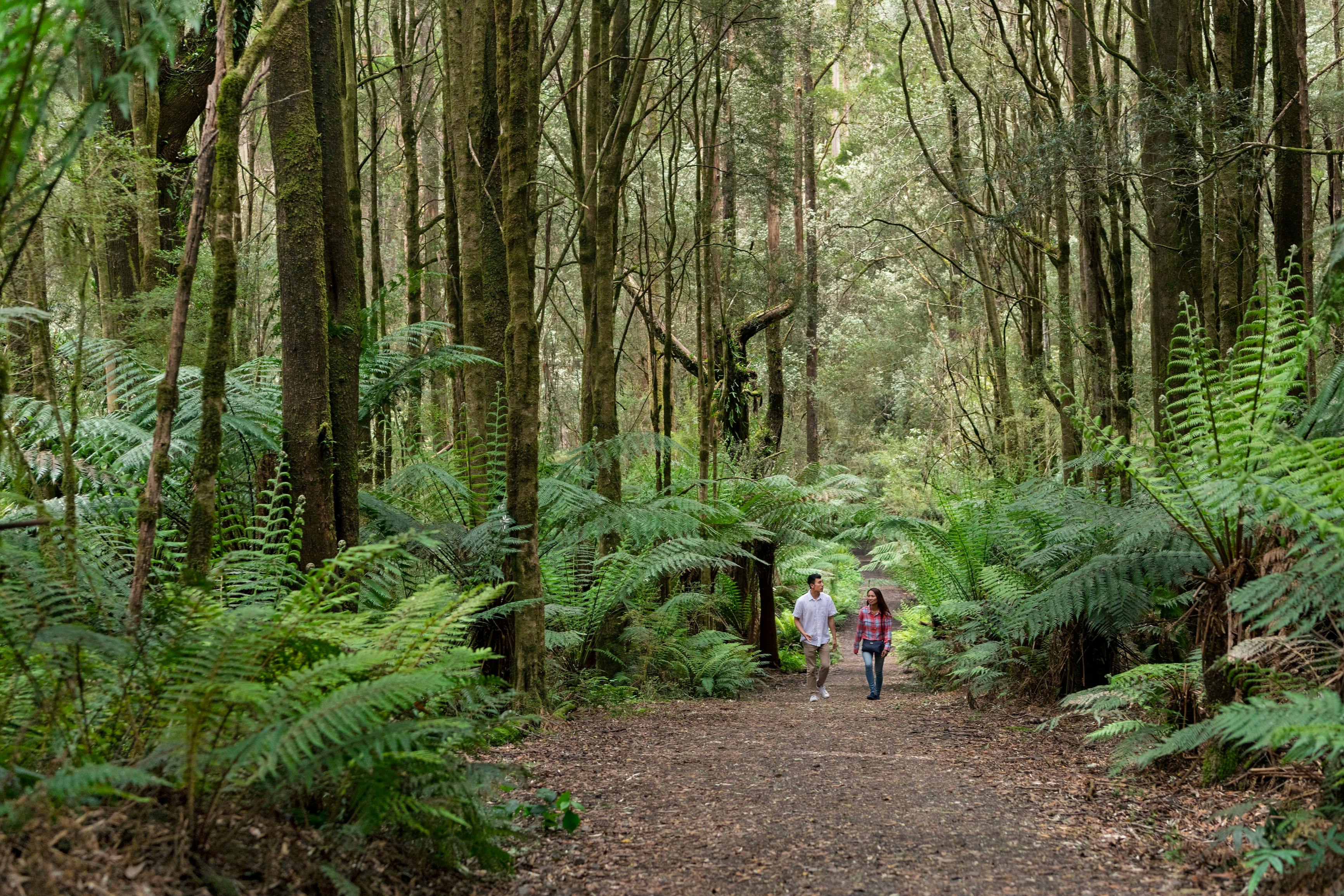The Beauchamp Falls Walk is a three kilometre one-hour return walk. The walk leaves from the Beauchamp Falls Campground picnic area and takes you to the spectacular 20 metre waterfall. Walk through the beautiful towering rainforest and enjoy scenic views of mountain ash forests and thick ferns.