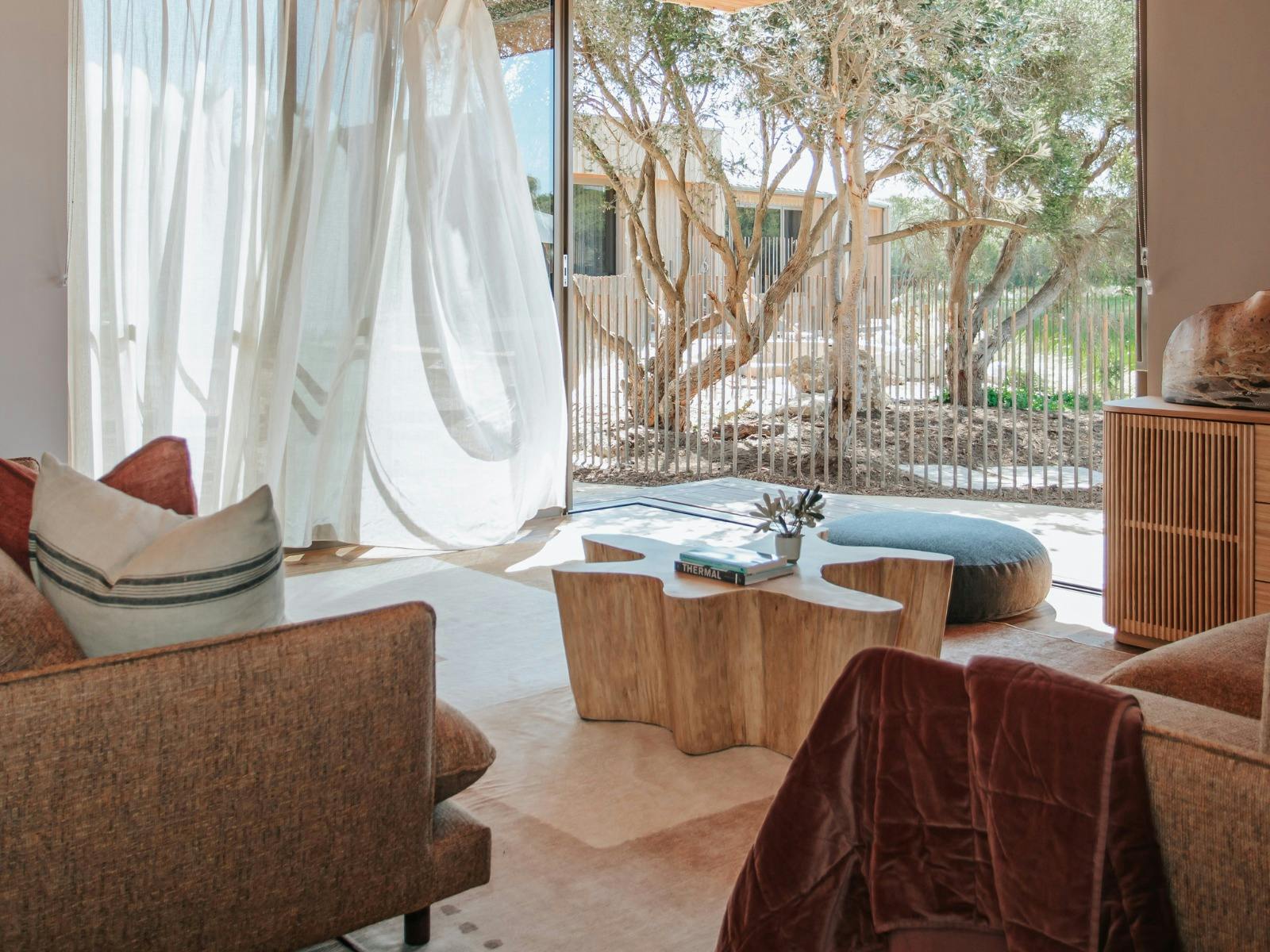 Comprising three lodges with ten rooms collectively, each space has been thoughtfully curated with ambient lighting, soundscapes and in-room amenities to facilitate a blissful sleep. Guests will enjoy bespoke elements inspired by the coastal surroundings, sleep enhancing amenities, private baths, ensuite bathrooms, king beds and art commissioned by local Mornington Peninsula artists.