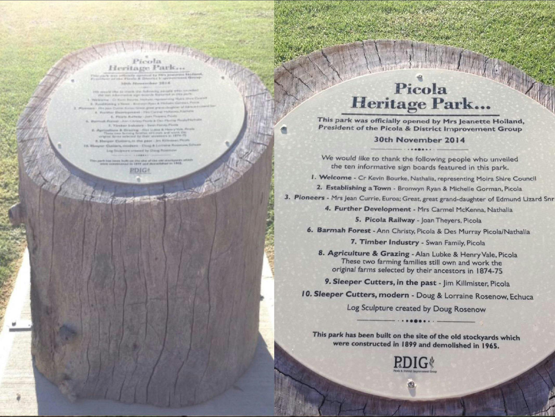 Around the park are displayed a series of informative sign boards which tell the story of Picola and how it came to be. A great display of pioneering history.