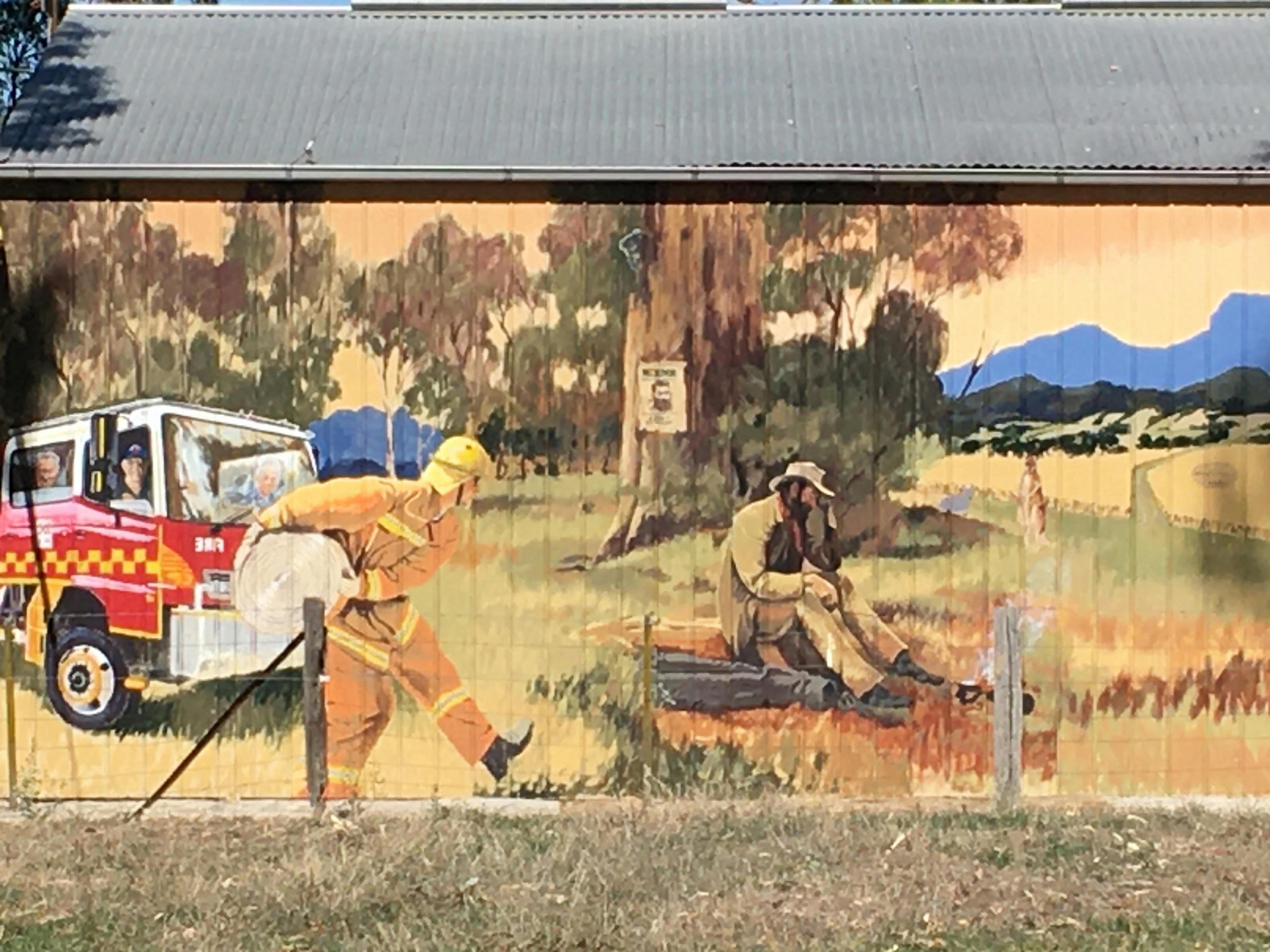 What makes this mural even more special? The artist behind it, Mike Larkin, isn't just an observer—he's part of the story. A proud local and a member of the Tatong Rural Fire Brigade himself, Mike has poured heart, soul, and firsthand experience into every brushstroke.
