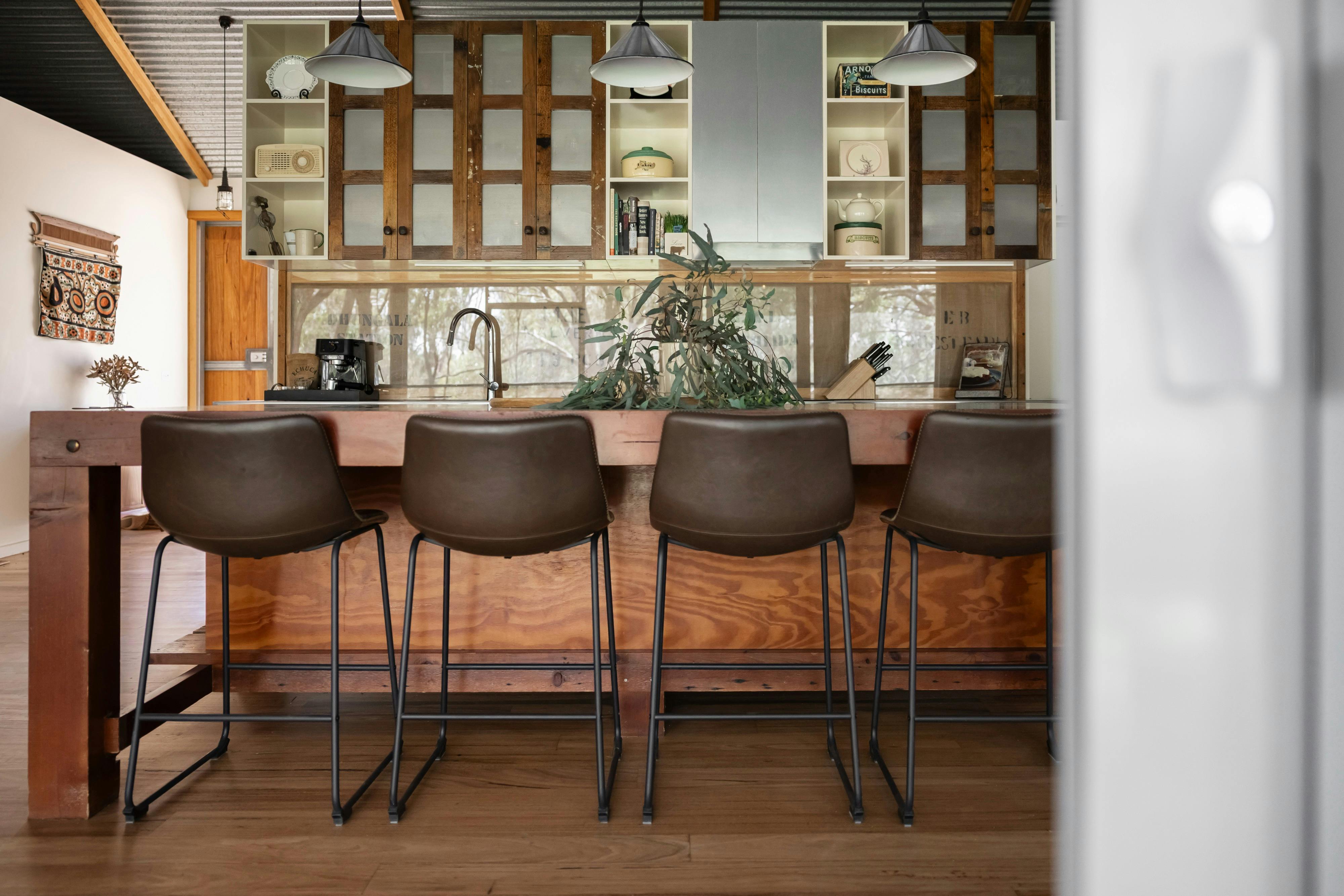 Each of the four queen bedrooms has been carefully styled to offer comfort, calm, and connection to the natural surrounds. With quality linen, spacious layouts, and a soothing bush palette, every room invites deep rest and relaxation. The Main Bedroom features its own private ensuite and exclusive access to a secluded outdoor bath — perfect for a peaceful soak under the stars. Sliding glass doors open onto the veranda, offering bush views and gentle breezes. Adjacent to the main bedroom, the Bush View Bedroom also opens onto the veranda and shares the same restful views of the surrounding native landscape. The two Treetop View Bedrooms are located at the back of the house, offering leafy, views of the treetops and are ideal for guests seeking privacy and quiet. The three non-ensuite rooms have easy access to the main shared bathroom and a separate toilet, ensuring convenience and comfort for all guests. The veranda is fully enclosed in flywire with ceiling fans, making it an additional space for relaxing and meals.