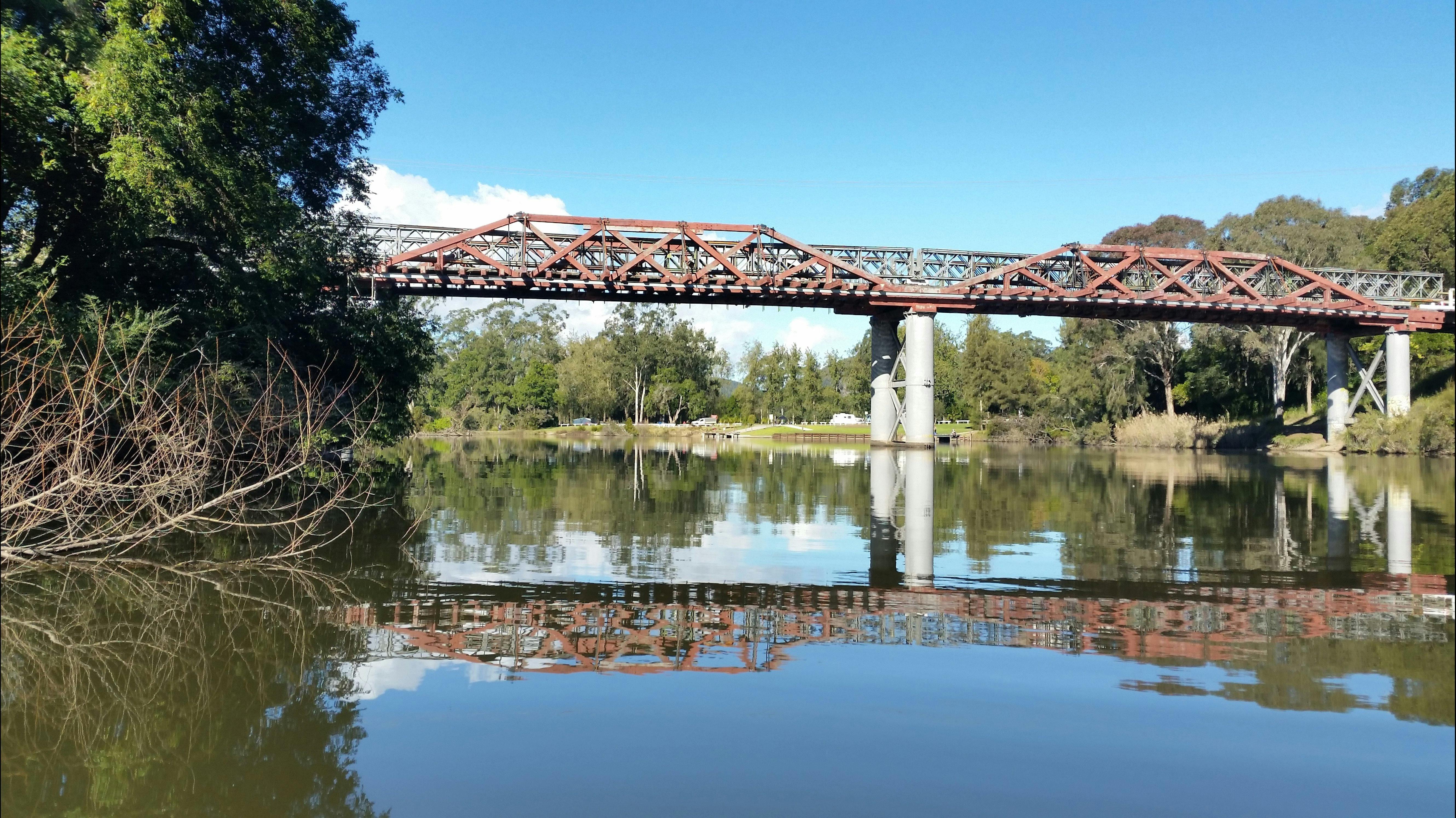 The Brig O'Johnston Bridge sits over the Williams River at Clarence Town and was built in 1880 and is the oldest surviving timber truss bridge in NSW.